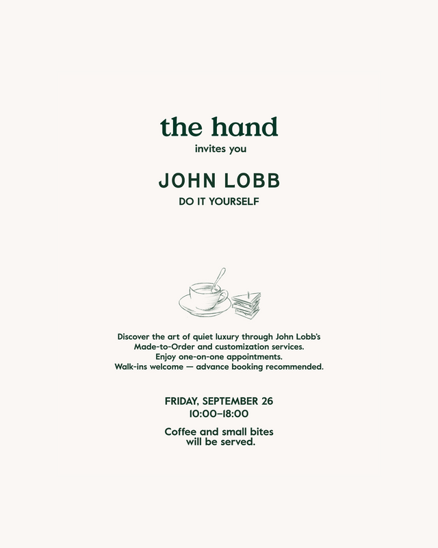 Join us in Amsterdam for an exclusive John Lobb experience. Enjoy a one-on-one appointment with Sanche de Laage of John Lobb and The Hand’s expert team. Discover the Made-to-Order collection, explore customization options, and place your order in-store. Coffee and small bites will be served. RSVP via WhatsApp or e-mail hello@meetthehand.com to secure your spot.